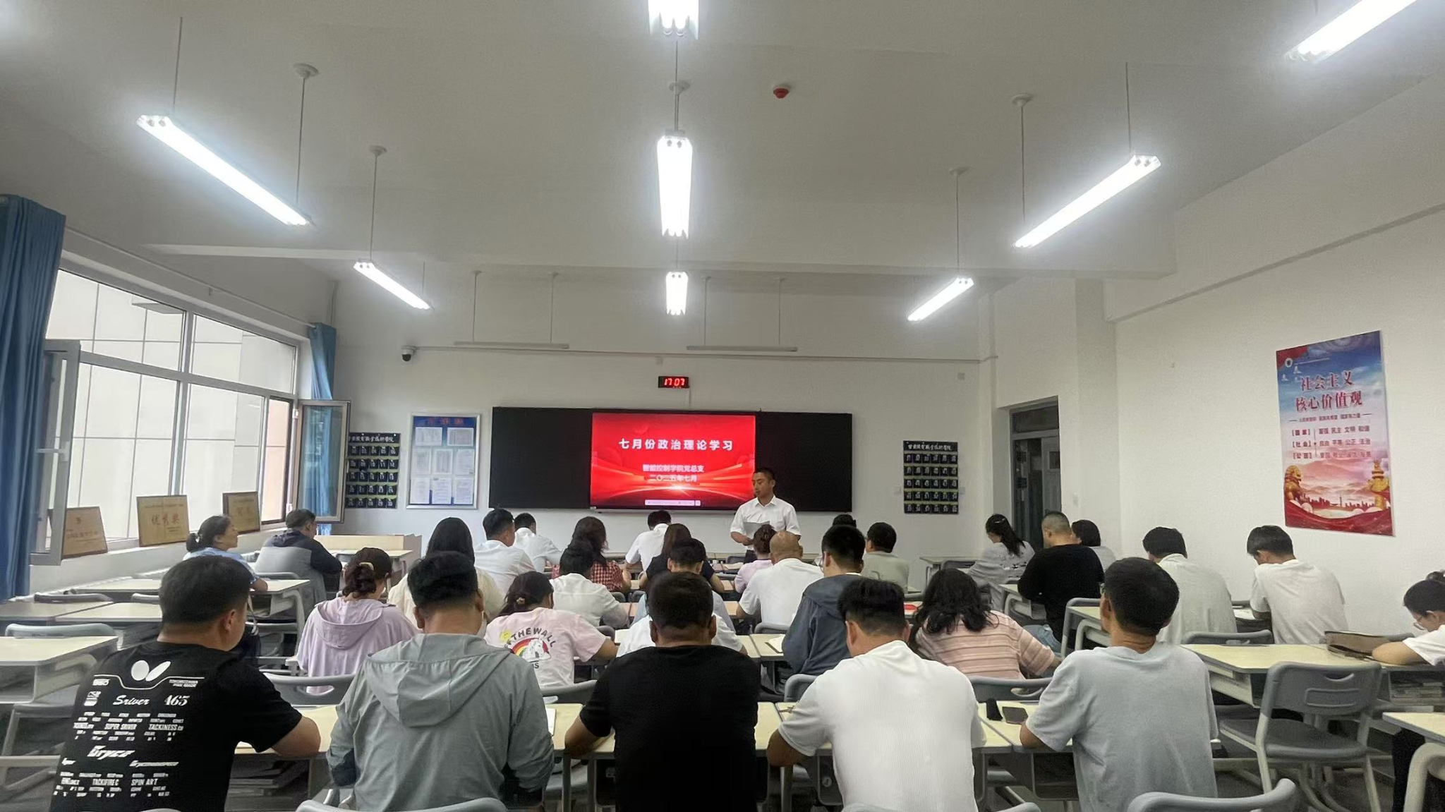 为进一步加强教师思想政治建设,提升政治理论水平,7月1日,智能控制学院全体教师齐聚明德楼C-101教室,开展政治理论学习活动。此次学习聚焦多个主题,通过对系列重要主题文章的深入研读,推动教师队伍在思想和行动上实现新提升。学习过程中,大家针对师德师风,违规吃喝,酒驾醉驾等问题进行了学习和交流。