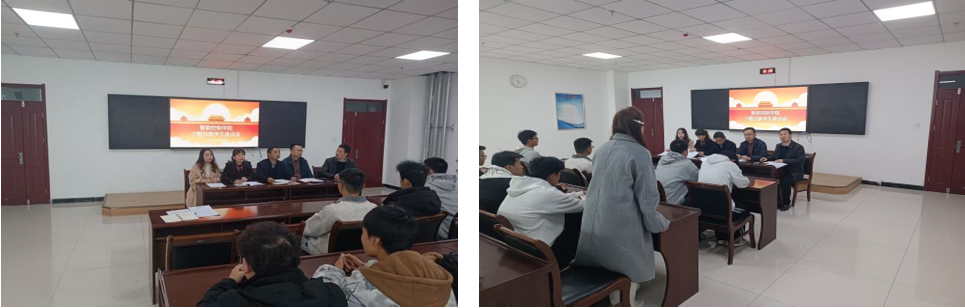 会上,ZK2416 马睿杰等 4 名学生代表依次发言,结合自身经历坦诚分享了专业知识学习、实训操作、住宿饮食、文化适应及就业规划等方面的困惑与诉求。学院领导与老师现场回应,李小军院长针对专业学习与实训实践给出具体指导,米保宏老师介绍了生活服务保障措施及优化方案,康芳老师解读就业政策并提供职业发展建议,精准回应学生关切。
